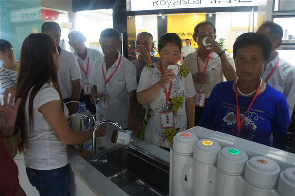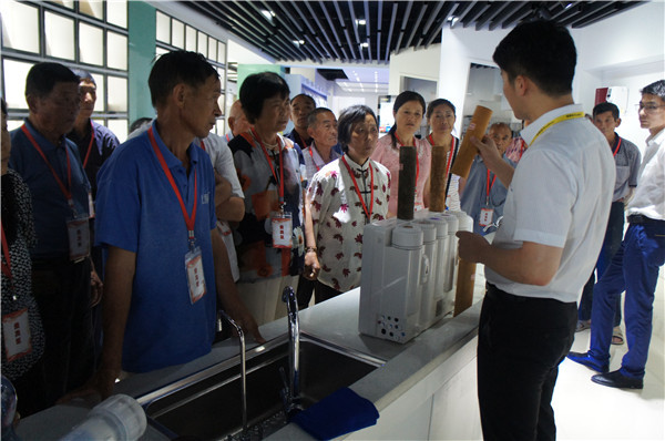 參觀中,安徽望江地區(qū)的李先生詢(xún)問(wèn)有沒(méi)有能過(guò)濾井水的產(chǎn)品,“我們家里沒(méi)通自來(lái)水,這些天連續(xù)大雨,家里井水犯渾,根本沒(méi)辦法喝?!惫ぷ魅藛T向其推薦了專(zhuān)門(mén)為農(nóng)村地區(qū)研發(fā)的自吸式純水機(jī),產(chǎn)品能有效克服水壓不足、不穩(wěn)問(wèn)題,采用先進(jìn)的反滲透技術(shù)和五級(jí)過(guò)濾系統(tǒng),能夠高效濾除水中雜質(zhì),去除水垢、水堿、農(nóng)藥、化肥、細(xì)菌、重金屬等有害物質(zhì)。在展廳,消費(fèi)者切身感受了產(chǎn)品使用效果,在飲用機(jī)器現(xiàn)制的水之后,紛紛稱(chēng)贊產(chǎn)品功能強(qiáng)。
