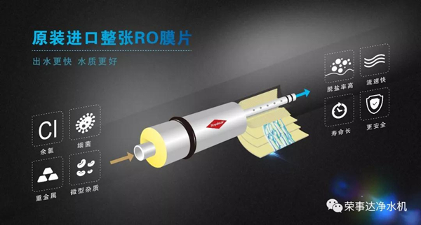 榮事達專注凈水十三年,向來以出眾的凈水效果聞名。此次400G智能反滲透凈水機融入五層凈化系統(tǒng)、高品質(zhì)椰殼活性炭濾芯等諸多先進工藝,尤其是在核心配件RO膜的選擇上,采用原裝進口整張RO膜片,性能遠遠超于市面上的碎膜壓制RO膜,凈化效果更佳,可充分去除水中余氯、細菌、重金屬等有害物質(zhì),出水可達直飲標準。