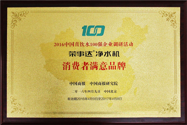 評(píng)審委員會(huì)由主辦方領(lǐng)導(dǎo)、凈水行業(yè)專家、戰(zhàn)略媒體、行業(yè)媒體、第三方調(diào)研機(jī)構(gòu)及消費(fèi)者代表組成,用國際通行方式,歷時(shí)三個(gè)多月,依據(jù)中國商報(bào)研究院發(fā)布的權(quán)威、公正,有影響力的凈水企業(yè)調(diào)研報(bào)告,綜合考慮消費(fèi)者對(duì)于品牌的認(rèn)知度、忠誠度及美譽(yù)度,評(píng)選出包括美的、3M等在內(nèi)的百強(qiáng)企業(yè),榮事達(dá)名列前茅,榮獲“中國直飲水10強(qiáng)企業(yè)”、“消費(fèi)者信賴企業(yè)”、“中國凈水行業(yè)十佳服務(wù)商”、“消費(fèi)者滿意品牌”多項(xiàng)大獎(jiǎng)。