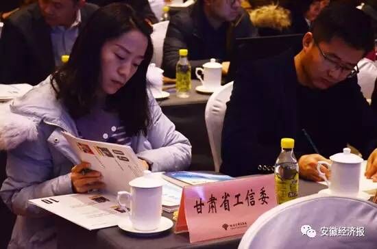 與會(huì)代表閱讀由安徽省經(jīng)信委編輯的《兩化融合在行動(dòng)》一書(安徽經(jīng)濟(jì)報(bào)社出版)