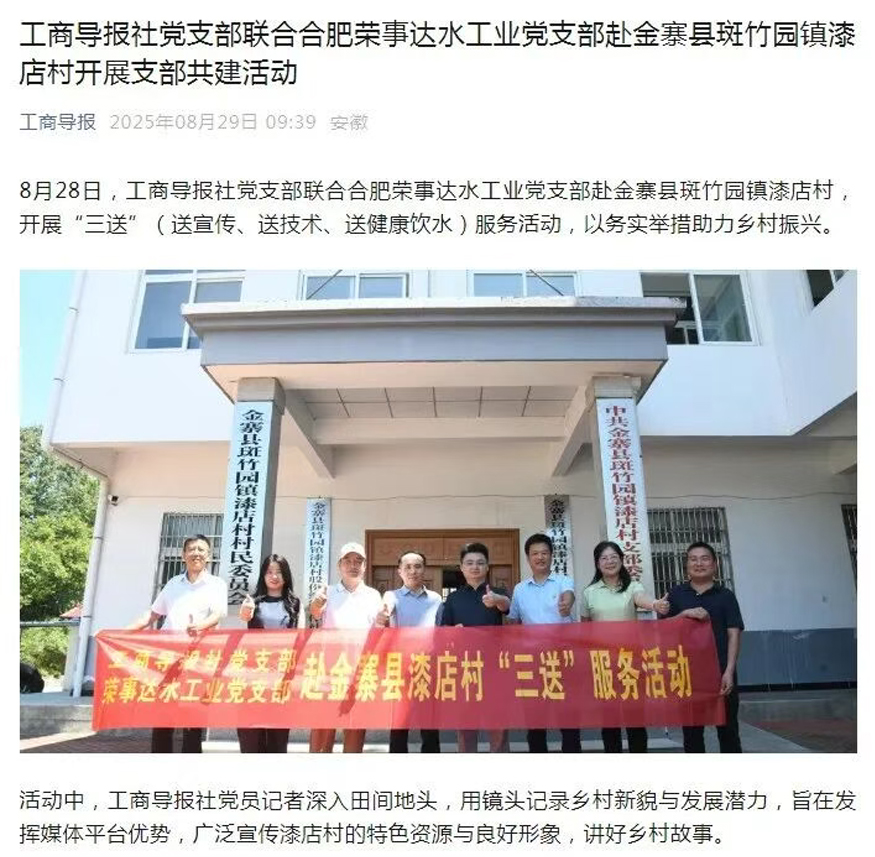 工商導(dǎo)報(bào)社黨支部聯(lián)合合肥榮事達(dá)水工業(yè)黨支部赴金寨縣斑竹園鎮(zhèn)漆店村開展支部共建活動(dòng)