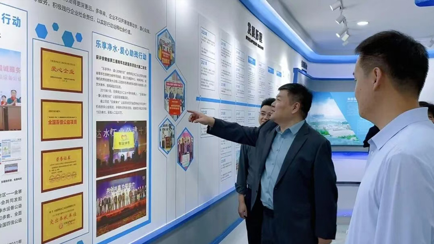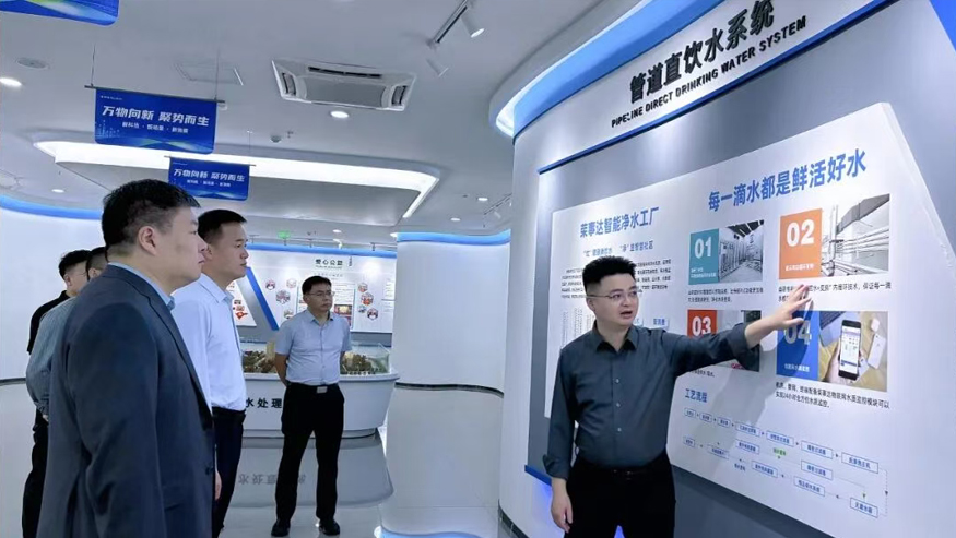 領(lǐng)導(dǎo)一行參觀了解集團(tuán)全屋智慧凈水、管道直飲水、校園智慧飲水、單位/工廠直飲水等項(xiàng)目,實(shí)現(xiàn)凈水行業(yè)全領(lǐng)域項(xiàng)目發(fā)展。