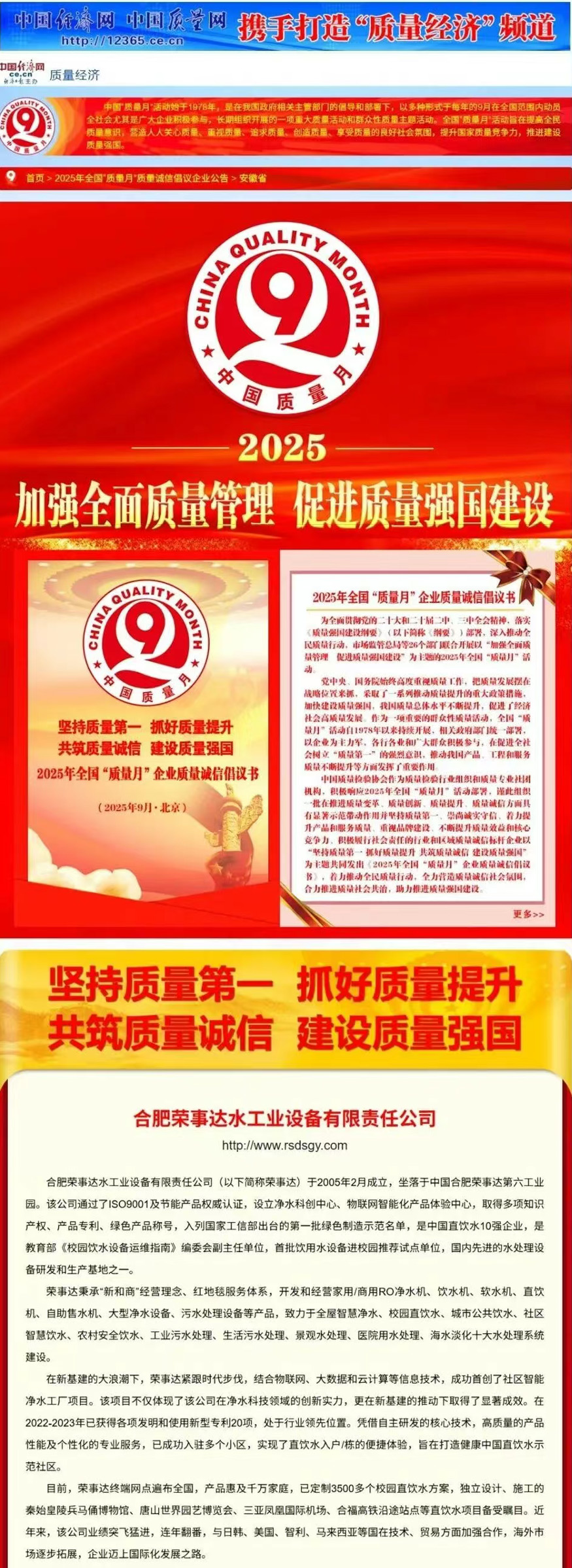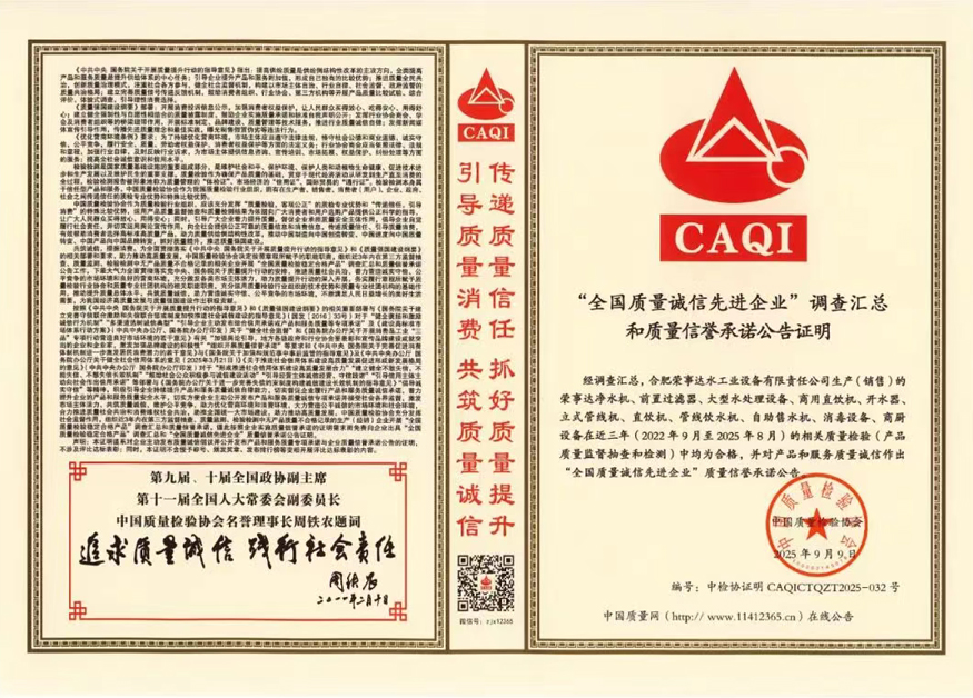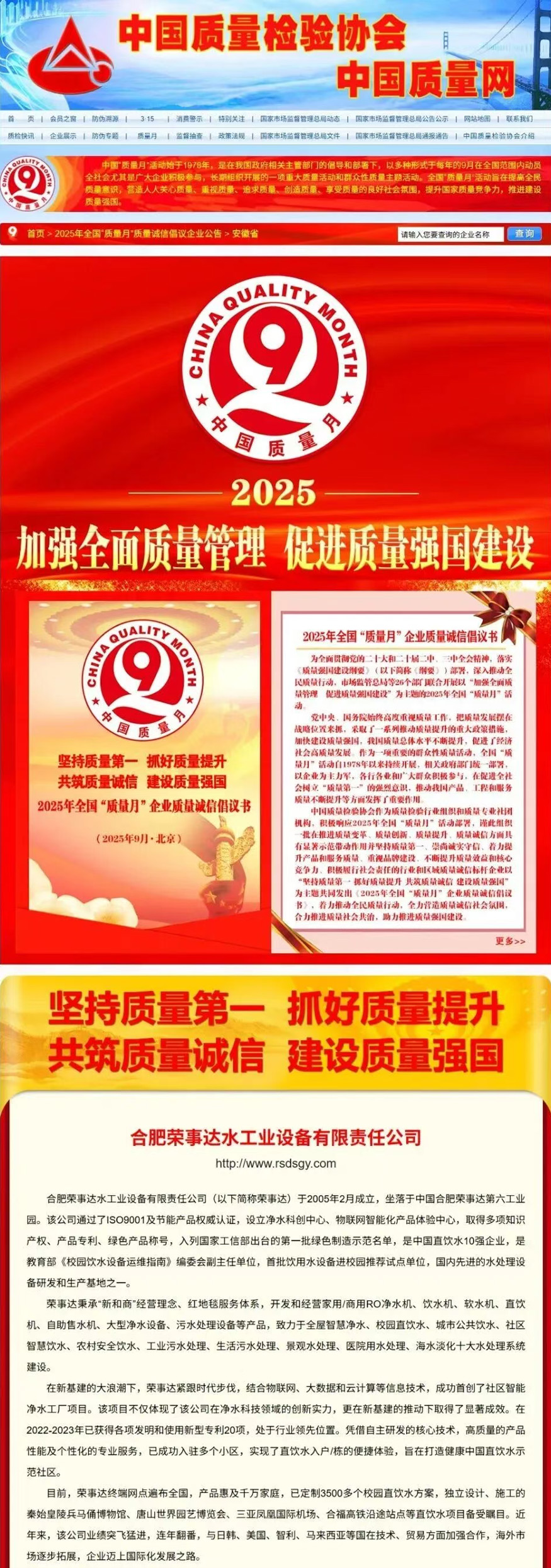 未來(lái),榮事達(dá)水工業(yè)將繼續(xù)秉持“質(zhì)量為先、誠(chéng)信為本”的理念,在凈水技術(shù)創(chuàng)新與產(chǎn)品品質(zhì)升級(jí)上持續(xù)發(fā)力,打造全場(chǎng)景、多領(lǐng)域的飲水解決方案,為推動(dòng)我國(guó)凈水行業(yè)高質(zhì)量發(fā)展與“質(zhì)量強(qiáng)國(guó)”建設(shè)貢獻(xiàn)更多力量。