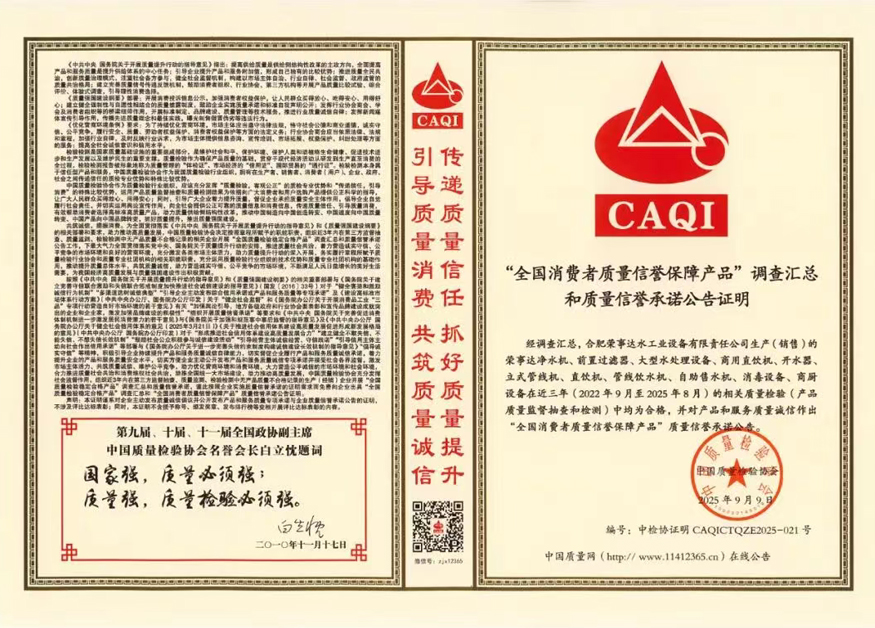 • 熱烈祝賀榮事達(dá)水工業(yè)在2025年全國(guó)“質(zhì)量月”活動(dòng)中斬獲“全國(guó)凈水行業(yè)質(zhì)量領(lǐng)先品牌”“全國(guó)消費(fèi)者質(zhì)量信譽(yù)保障產(chǎn)品”等五項(xiàng)殊榮