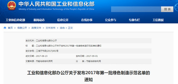 為貫徹落實《中國制造2025》,深入實施綠色制造工程,加快構(gòu)建綠色制造體系,率先打造一批綠色制造先進典型,工信部確定了2017年第一批綠色制造示范...
