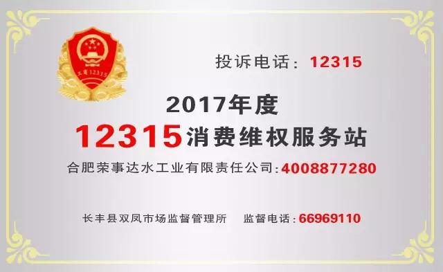 榮事達水工業(yè)公司獲“12315消費者維權(quán)服務(wù)站”及“12365質(zhì)量監(jiān)督服務(wù)站”兩項殊榮
