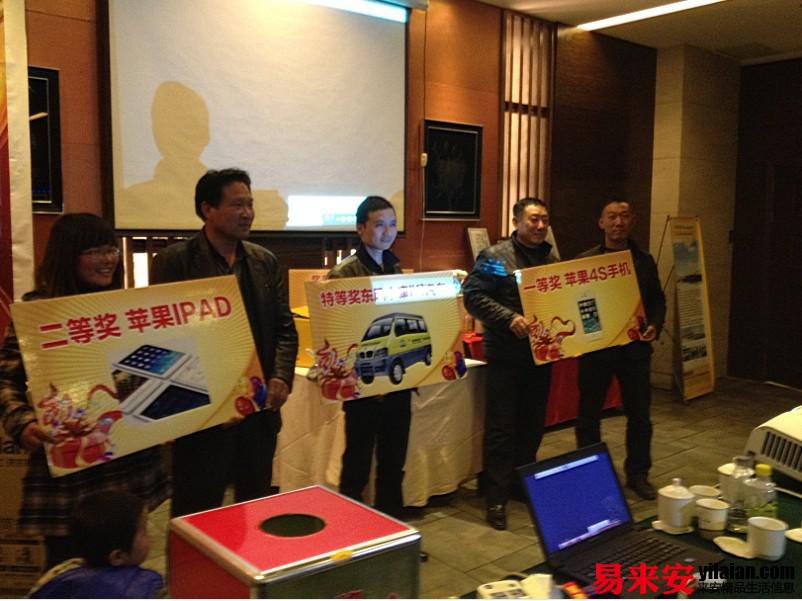 會(huì)議還安排了訂貨抽獎(jiǎng)環(huán)節(jié),東風(fēng)汽車、iphone4s、ipad、格蘭仕滾筒洗衣機(jī)等豐厚的獎(jiǎng)品激發(fā)了與會(huì)經(jīng)銷商的訂貨熱情。一位來(lái)自天長(zhǎng)的新客戶場(chǎng)訂貨達(dá)37萬(wàn) 幸運(yùn)抽中汽車大獎(jiǎng)。