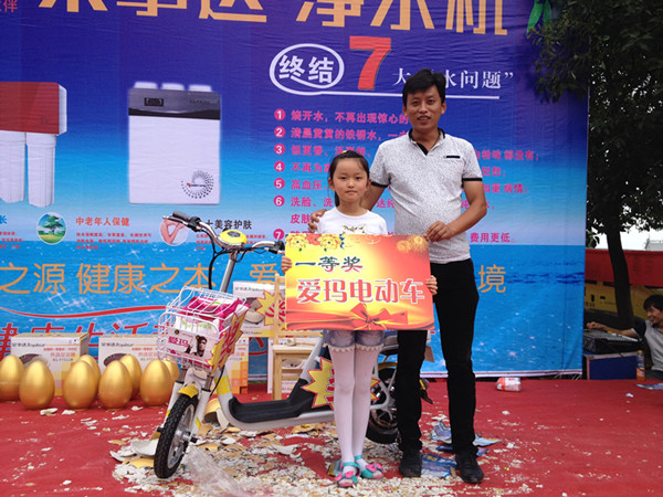 為打開市場、推廣產品,蕪湖管理中心舉辦了多次市場活動。7月5日,榮事達凈水機“送健康 進萬家”感恩回饋活動在蕪湖市三山區(qū)順利舉行,現(xiàn)場人氣爆棚。消費者購機不但能享受價格優(yōu)惠,還能砸金蛋抽大獎。活動當天,現(xiàn)場成交凈水機達34臺,電動車、洗衣機等大獎均被抽出。
