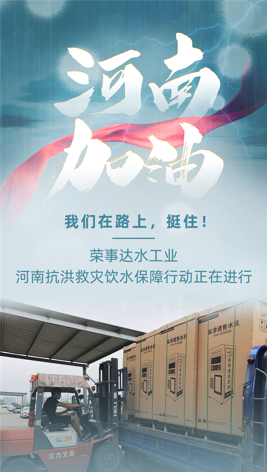 榮事達水工業(yè)集團在得知鄭州洪災消息,第一時間攜手安徽省河南商會與地方部門取得聯(lián)系,開始籌備捐贈愛心健康水站。這些設(shè)備將全面投放于鄭州市多個災民安置區(qū)、抗洪指揮中心等人口密集點。