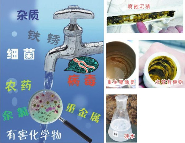 我國(guó)的自來水與世界相比屬于極低標(biāo)準(zhǔn)水,即使部分達(dá)標(biāo)的自來水在輸水管網(wǎng)、高樓水塔中也會(huì)造成二次污染而不達(dá)標(biāo)。我國(guó)目前水廠只能對(duì)物理污染和微生物污染進(jìn)行凈化處理,而無法對(duì)化學(xué)污染,諸如農(nóng)藥、殺蟲劑、合成洗滌劑、重金屬、各種有機(jī)物、無機(jī)化合物及其他有害毒素進(jìn)行處理。因此,僅把水煮沸、燒開并不是完全安全的。